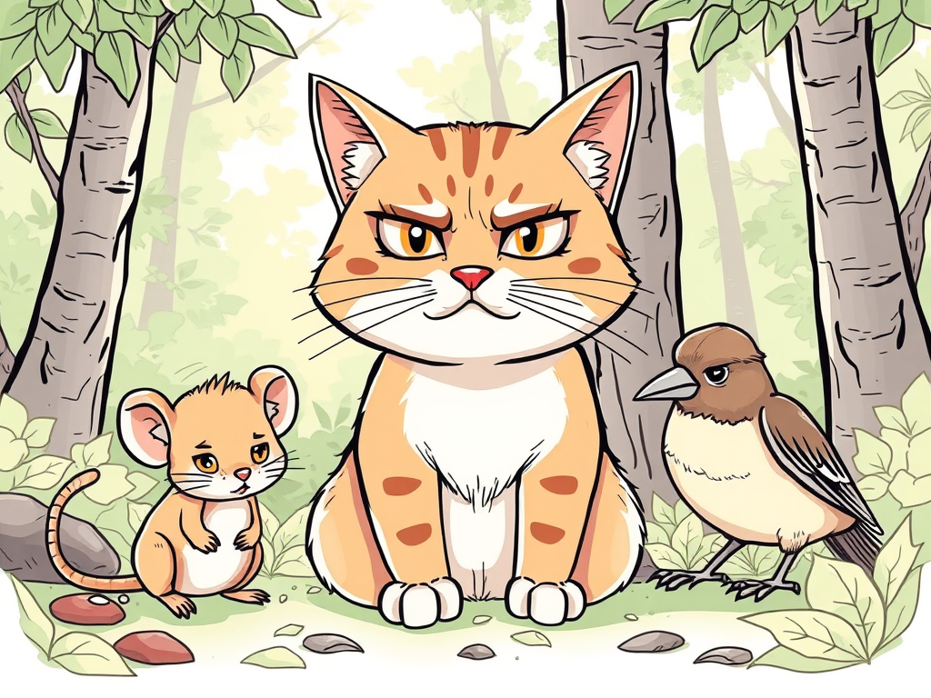 Maus: Das werde ich dir sicher nicht verraten, sonst ende ich wie der Vogel. Streck deine Pfote in dieses Loch da ‒ dann kann ich von unter der Erde einen Blick darauf werfen.